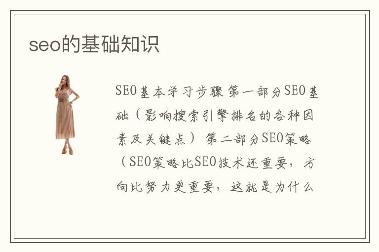 SEO基本學(xué)習(xí)步驟 第一部分SEO基礎(chǔ)(影響搜索引擎排名的各種因素及關(guān)鍵點) 第二部分SEO策略(SEO策略比SEO技術(shù)還重要,方向比努力更重要,這就是為什么很多人做