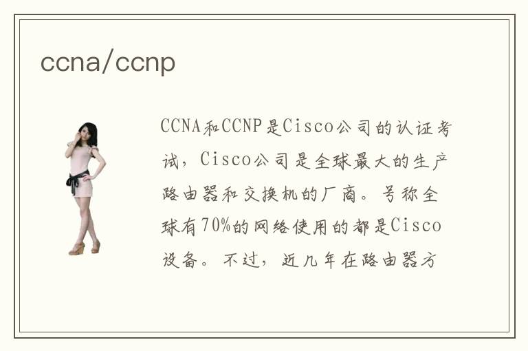 CCNA和CCNP是Cisco公司的認(rèn)證考試,Cisco公司是全球最大的生產(chǎn)路由器和交換機(jī)的廠商。號(hào)稱全球有70%的網(wǎng)絡(luò)使用的都是Cisco設(shè)備。不過,近幾年在路由器方面,高端不