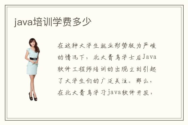 在這種大學生就業(yè)形勢極為嚴峻的情況下,北大青鳥學士后Java軟件工程師培訓的出現(xiàn)立刻引起了大學生們的廣泛關注。那么,在北大青鳥學習java軟件開發(fā),學費是多少呢?