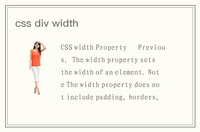 CSS width Property ? Previous. The width property sets the width of an element. Note The width property does not include padding, borders, or margins;
