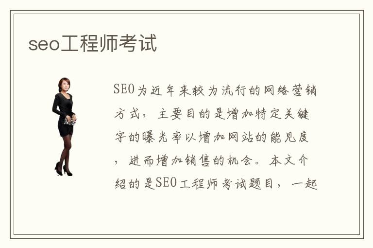 SEO為近年來較為流行的網(wǎng)絡(luò)營銷方式,主要目的是增加特定關(guān)鍵字的曝光率以增加網(wǎng)站的能見度,進(jìn)而增加銷售的機(jī)會(huì)。本文介紹的是SEO工程師考試題目,一起來看。