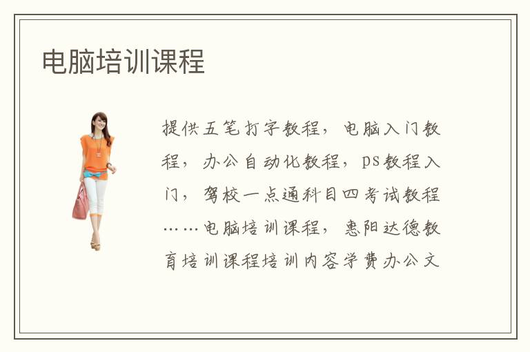 電腦培訓(xùn)課程,惠陽達(dá)德教育培訓(xùn)課程培訓(xùn)內(nèi)容學(xué)費(fèi)辦公文秘班五筆打字、拼音打字、Windows操作系統(tǒng)、Word編輯排版、Excel電子表格、Powerpoint幻燈