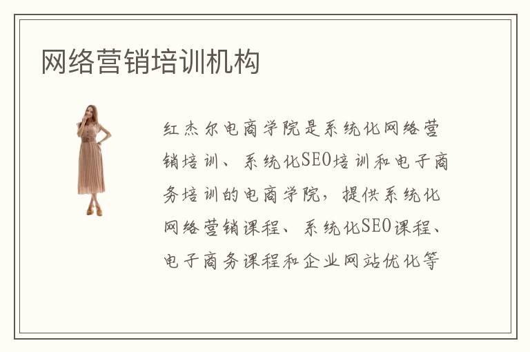 紅杰爾電商學(xué)院是系統(tǒng)化網(wǎng)絡(luò)營(yíng)銷培訓(xùn)、系統(tǒng)化SEO培訓(xùn)和電子商務(wù)培訓(xùn)的電商學(xué)院,提供系統(tǒng)化網(wǎng)絡(luò)營(yíng)銷課程、系統(tǒng)化SEO課程、電子商務(wù)課程和企業(yè)網(wǎng)站優(yōu)化等!
