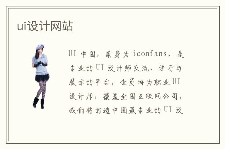 UI 中國,前身為 iconfans,是專業(yè)的 UI 設(shè)計師交流、學(xué)習(xí)與展示的平臺。會員均為職業(yè) UI 設(shè)計師,覆蓋全國互聯(lián)網(wǎng)公司。我們將打造中國最專業(yè)的 UI 設(shè)計交流平臺,為UI 設(shè)計師