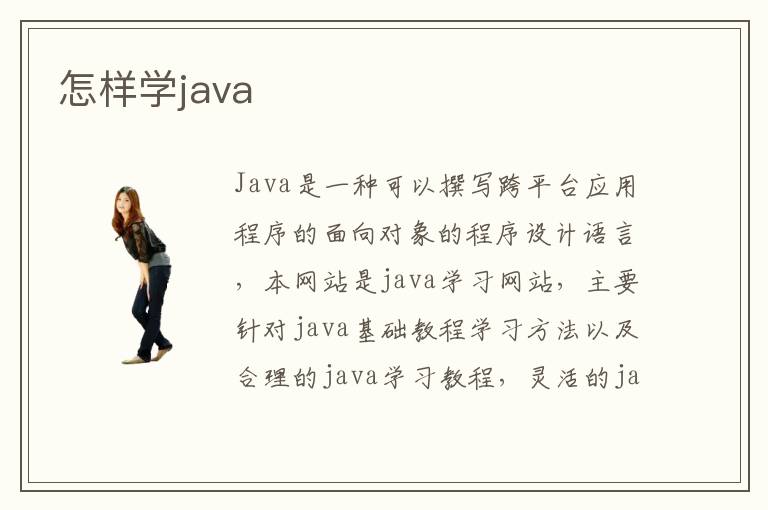 Java是一種可以撰寫(xiě)跨平臺(tái)應(yīng)用程序的面向?qū)ο蟮某绦蛟O(shè)計(jì)語(yǔ)言,本網(wǎng)站是java學(xué)習(xí)網(wǎng)站,主要針對(duì)java基礎(chǔ)教程學(xué)習(xí)方法以及合理的java學(xué)習(xí)教程,靈活的java網(wǎng)絡(luò)編程技術(shù),