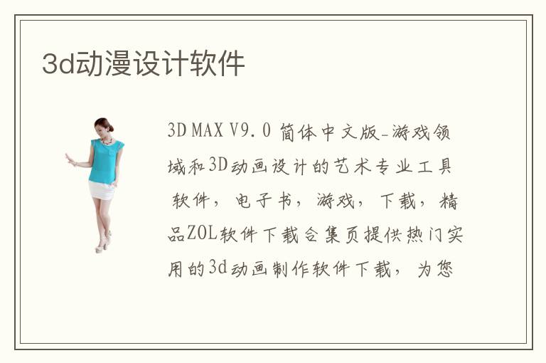 ZOL軟件下載合集頁提供熱門實用的3d動畫制作軟件下載,為您推薦實用和熱門的3d動畫 三維動畫軟件在計算機中首先建立一個虛擬的世界,設(shè)計師在這個虛擬的三維世界中按照