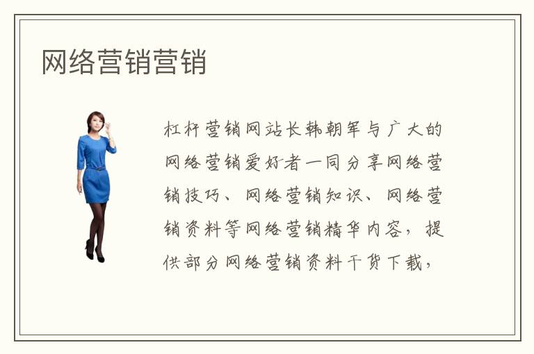 杠桿營銷網(wǎng)站長韓朝軍與廣大的網(wǎng)絡(luò)營銷愛好者一同分享網(wǎng)絡(luò)營銷技巧、網(wǎng)絡(luò)營銷知識、網(wǎng)絡(luò)營銷資料等網(wǎng)絡(luò)營銷精華內(nèi)容,提供部分網(wǎng)絡(luò)營銷資料干貨下載,讓您結(jié)合網(wǎng)絡(luò)營銷資