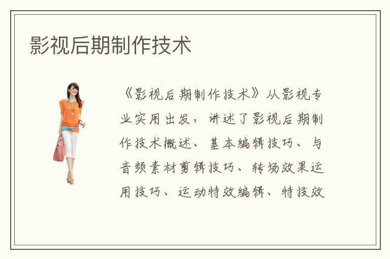 《影視后期制作技術(shù)》從影視專業(yè)實用出發(fā),講述了影視后期制作技術(shù)概述、基本編輯技巧、與音頻素材剪輯技巧、轉(zhuǎn)場效果運用技巧、運動特效編輯、特技效果