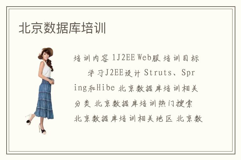 培訓(xùn)內(nèi)容 1J2EE Web服 培訓(xùn)目標(biāo) ? 學(xué)習(xí)J2EE設(shè)計(jì) Struts、Spring和Hibe 北京數(shù)據(jù)庫培訓(xùn)相關(guān)分類 北京數(shù)據(jù)庫培訓(xùn)熱門搜索 北京數(shù)據(jù)庫培訓(xùn)相關(guān)地區(qū) 北京數(shù)據(jù)庫培訓(xùn)周邊城