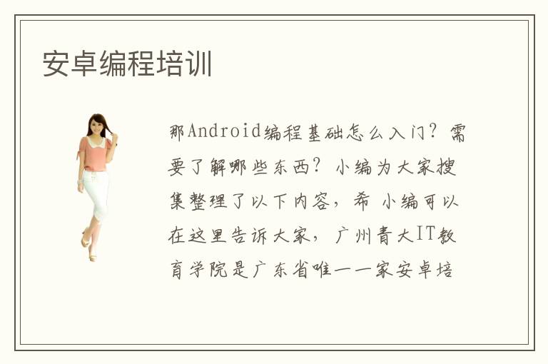 那Android編程基礎(chǔ)怎么入門?需要了解哪些東西?小編為大家搜集整理了以下內(nèi)容,希 小編可以在這里告訴大家,廣州青大IT教育學(xué)院是廣東省唯一一家安卓培訓(xùn)的學(xué)校。學(xué)校