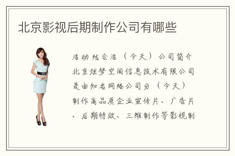 活動(dòng) 結(jié)合活 (今天) 公司簡(jiǎn)介北京炫夢(mèng)空間信息技術(shù)有限公司是由知名網(wǎng)絡(luò)公司分 (今天) 制作高品質(zhì)企業(yè)宣傳片、廣告片、后期特效、三維制作等影視制作,