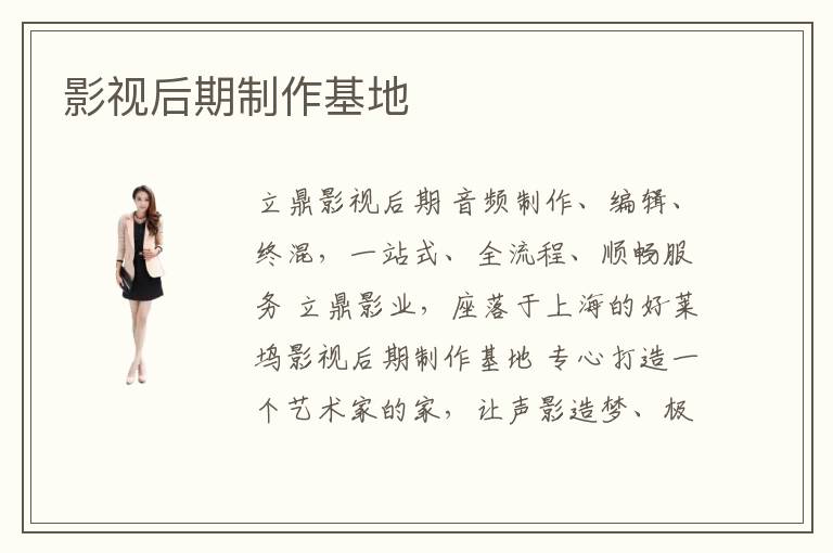 立鼎影視后期 音頻制作、編輯、終混,一站式、全流程、順暢服務(wù) 立鼎影業(yè),座落于上海的好萊塢影視后期制作基地 專心打造一個(gè)藝術(shù)家的家,讓聲影造夢(mèng)、極致呈現(xiàn),成就偉大
