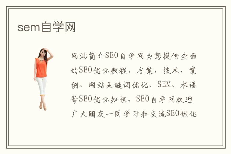 網(wǎng)站簡(jiǎn)介SEO自學(xué)網(wǎng)為您提供全面的SEO優(yōu)化教程、方案、技術(shù)、案例、網(wǎng)站關(guān)鍵詞優(yōu)化、SEM、術(shù)語(yǔ)等SEO優(yōu)化知識(shí),SEO自學(xué)網(wǎng)歡迎廣大朋友一同學(xué)習(xí)和交流SEO優(yōu)化方面