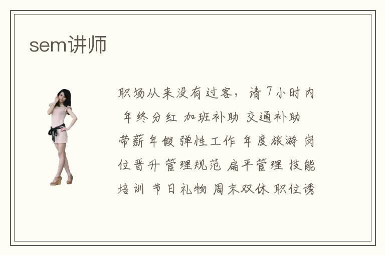 [西寧光點科技網(wǎng)絡(luò)有限公司最新招聘信息]誠聘SEM講師5人,工作地點位于西寧城西,公司規(guī)模50-99人,薪資待遇3000-5000元,工作經(jīng)驗3-5年,學(xué)歷要求本科,崗位職責(zé) 1、