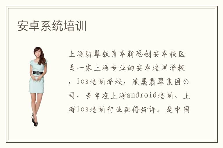 上海翡翠教育卓新思創(chuàng)安卓校區(qū)是一家上海專業(yè)的安卓培訓(xùn)學(xué)校,ios培訓(xùn)學(xué)校,隸屬翡翠集團(tuán)公司,多年在上海android培訓(xùn)、上海ios培訓(xùn)行業(yè)獲得好評(píng)。是中國(guó)首家研發(fā)全真項(xiàng)目