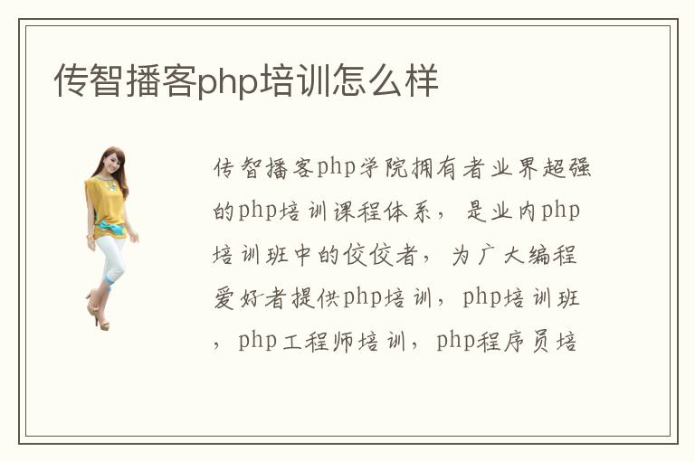 傳智播客php學(xué)院擁有者業(yè)界超強(qiáng)的php培訓(xùn)課程體系,是業(yè)內(nèi)php培訓(xùn)班中的佼佼者,為廣大編程愛好者提供php培訓(xùn),php培訓(xùn)班,php工程師培訓(xùn),php程序員培訓(xùn),php開發(fā),