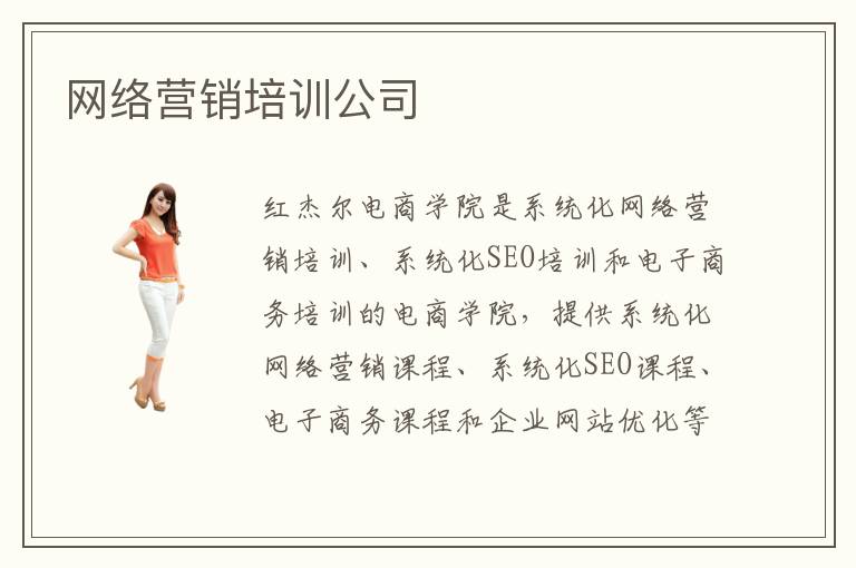 紅杰爾電商學(xué)院是系統(tǒng)化網(wǎng)絡(luò)營(yíng)銷培訓(xùn)、系統(tǒng)化SEO培訓(xùn)和電子商務(wù)培訓(xùn)的電商學(xué)院,提供系統(tǒng)化網(wǎng)絡(luò)營(yíng)銷課程、系統(tǒng)化SEO課程、電子商務(wù)課程和企業(yè)網(wǎng)站優(yōu)化等!