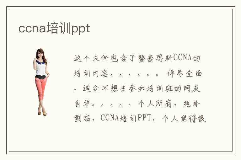 這個(gè)文件包含了整套思科CCNA的培訓(xùn)內(nèi)容。。。。。。 詳盡全面,適合不想去參加培訓(xùn)班的網(wǎng)友自學(xué)。。。。。