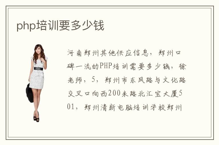 河南鄭州其他供應(yīng)信息,鄭州口碑一流的PHP培訓(xùn)需要多少錢(qián),徐老師,5,鄭州市東風(fēng)路與文化路交叉口向西200米路北匯寶大廈501,鄭州清新電腦培訓(xùn)學(xué)校