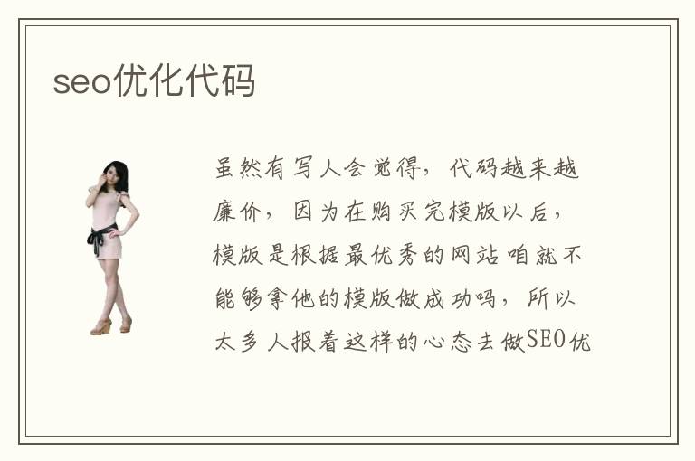 雖然有寫人會覺得,代碼越來越廉價,因為在購買完模版以后,模版是根據(jù)最優(yōu)秀的網(wǎng)站 咱就不能夠拿他的模版做成功嗎,所以太多人報著這樣的心態(tài)去做SEO優(yōu)化,其實這里面