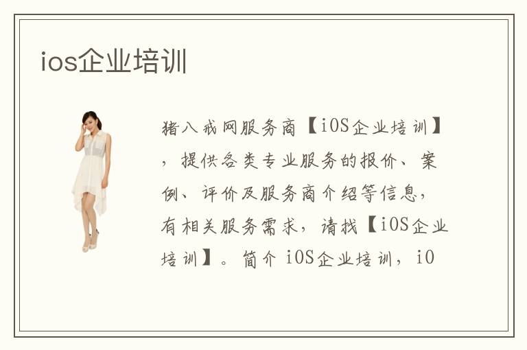 豬八戒網(wǎng)服務(wù)商【iOS企業(yè)培訓(xùn)】,提供各類專業(yè)服務(wù)的報價、案例、評價及服務(wù)商介紹等信息,有相關(guān)服務(wù)需求,請找【iOS企業(yè)培訓(xùn)】。