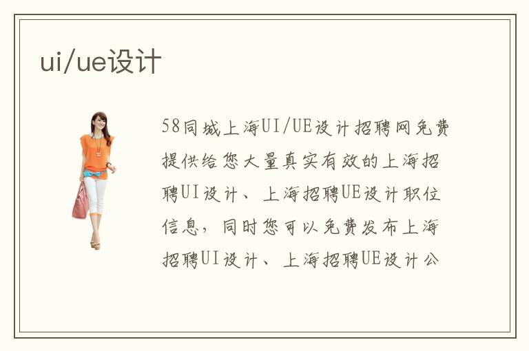 58同城上海UI/UE設計招聘網(wǎng)免費提供給您大量真實有效的上海招聘UI設計、上海招聘UE設計職位信息,同時您可以免費發(fā)布上海招聘UI設計、上海招聘UE設計公司職位信息。最好