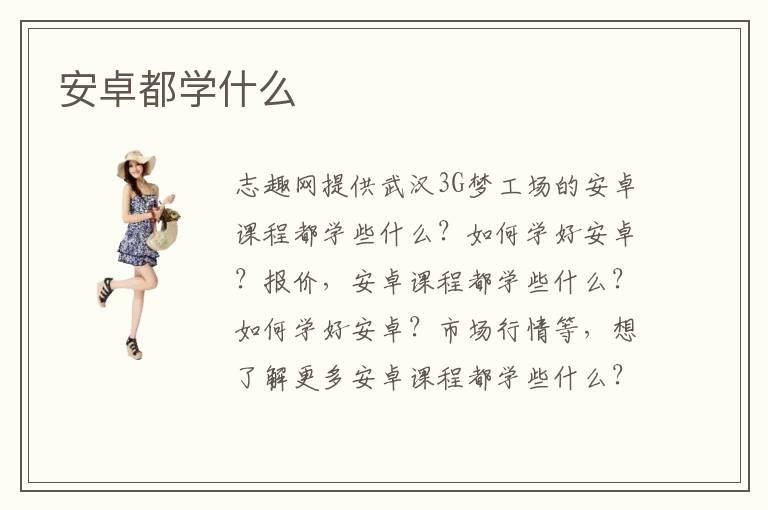 志趣網(wǎng)提供武漢3G夢工場的安卓課程都學(xué)些什么?如何學(xué)好安卓?報價,安卓課程都學(xué)些什么?如何學(xué)好安卓?市場行情等,想了解更多安卓課程都學(xué)些什么?如何學(xué)好安卓?供