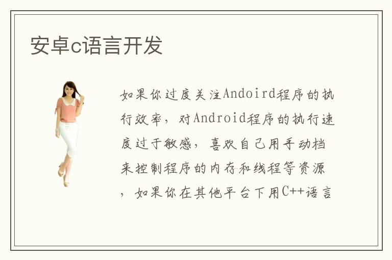 如果你過度關(guān)注Andoird程序的執(zhí)行效率,對Android程序的執(zhí)行速度過于敏感,喜歡自己用手動檔來控制程序的內(nèi)存和線程等資源,如果你在其他平臺下用C++語言開發(fā)了一個程序