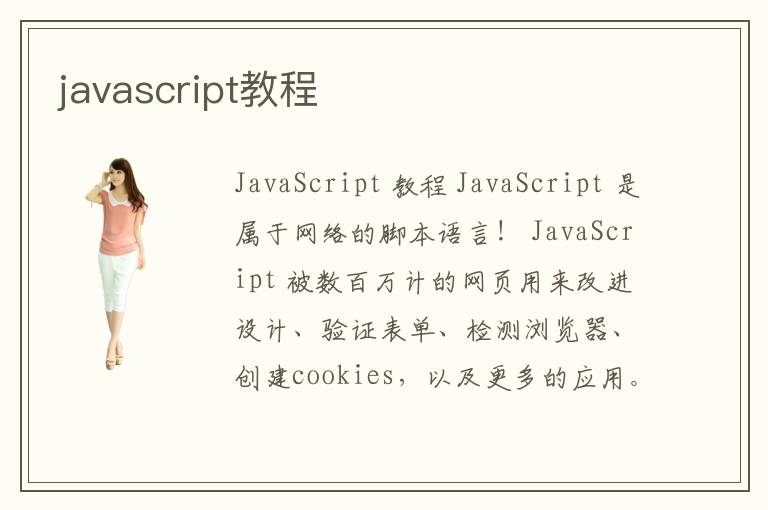 分享個人的JavaScript學習經歷,做最好的JavaScript資料分享站點 這是一個JavaScript的基本教程,它從零開始說起,為大家提供逐步的學習過程!本教程為未接觸過js腳本的讀者