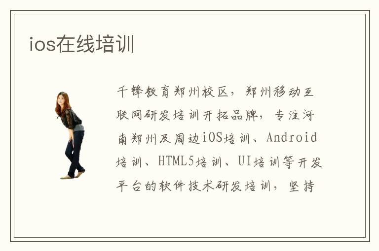 千鋒教育鄭州校區(qū),鄭州移動互聯(lián)網(wǎng)研發(fā)培訓(xùn)開拓品牌,專注河南鄭州及周邊iOS培訓(xùn)、Android培訓(xùn)、HTML5培訓(xùn)、UI培訓(xùn)等開發(fā)平臺的軟件技術(shù)研發(fā)培訓(xùn),堅(jiān)持用“良心做教育