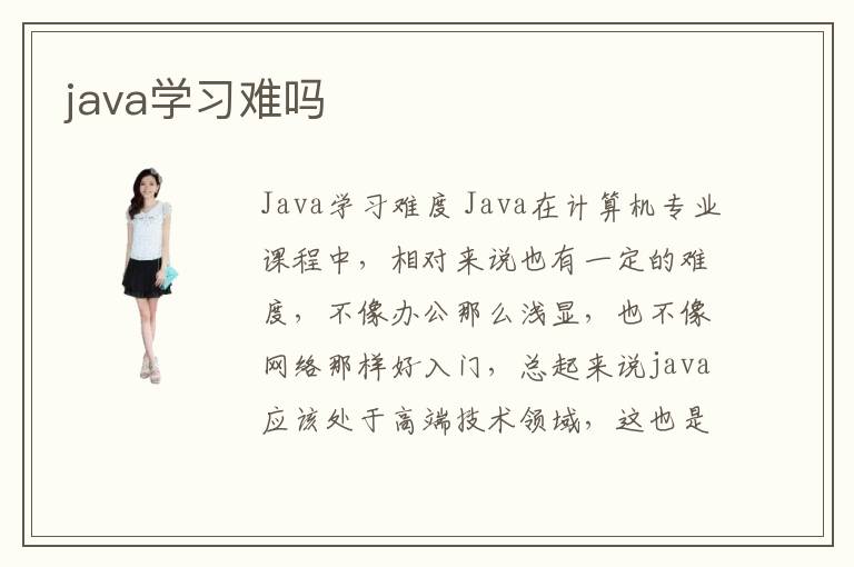 Java學(xué)習(xí)難度 Java在計(jì)算機(jī)專業(yè)課程中,相對(duì)來(lái)說(shuō)也有一定的難度,不像辦公那么淺顯,也不像網(wǎng)絡(luò)那樣好入門(mén),總起來(lái)說(shuō)java應(yīng)該處于高端技術(shù)領(lǐng)域,這也是他必須應(yīng)有的特性,
