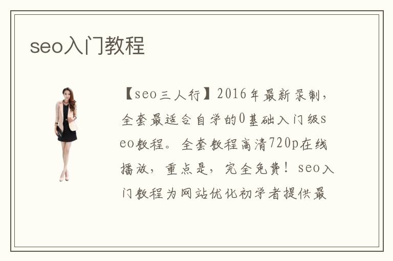 【seo三人行】2016年最新錄制,全套最適合自學(xué)的0基礎(chǔ)入門級seo教程。全套教程高清720p在線播放,重點是,完全免費!
