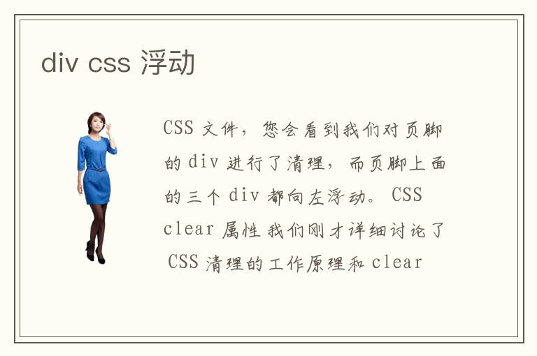 最近在做一個網(wǎng)頁的div+css切割,昨晚發(fā)現(xiàn)了長期以來一直無記錄下來的問題!關于兼 我通常把清除浮動寫成單獨的<div class=”clear”></div>放在所有浮動div的最下方。 二