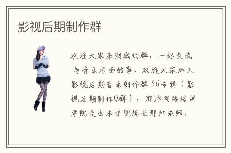 歡迎大家來(lái)到我的群,一起交流 與音樂(lè)方面的事,歡迎大家加入影視后期音樂(lè)制作群