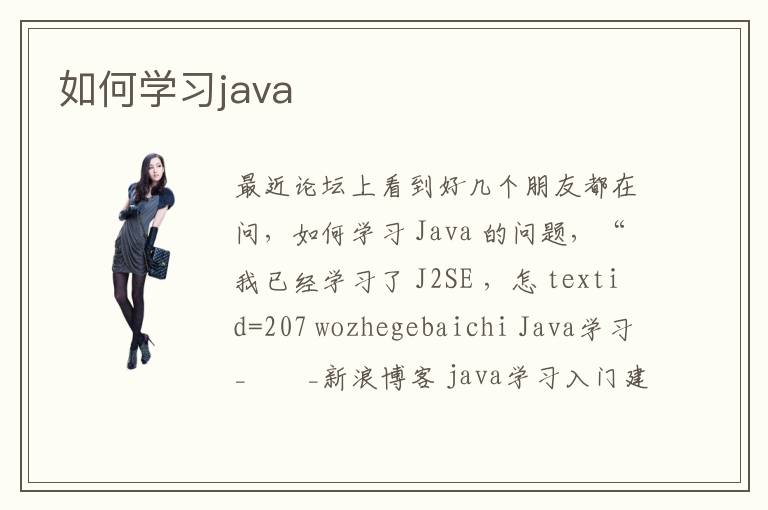最近論壇上看到好幾個朋友都在問,如何學(xué)習(xí) Java 的問題,“我已經(jīng)學(xué)習(xí)了 J2SE ,怎 textid=207 wozhegebaichi Java學(xué)習(xí)_尛愺_新浪博客 java學(xué)習(xí)入門建議-摘自CSDN熱心網(wǎng)友
