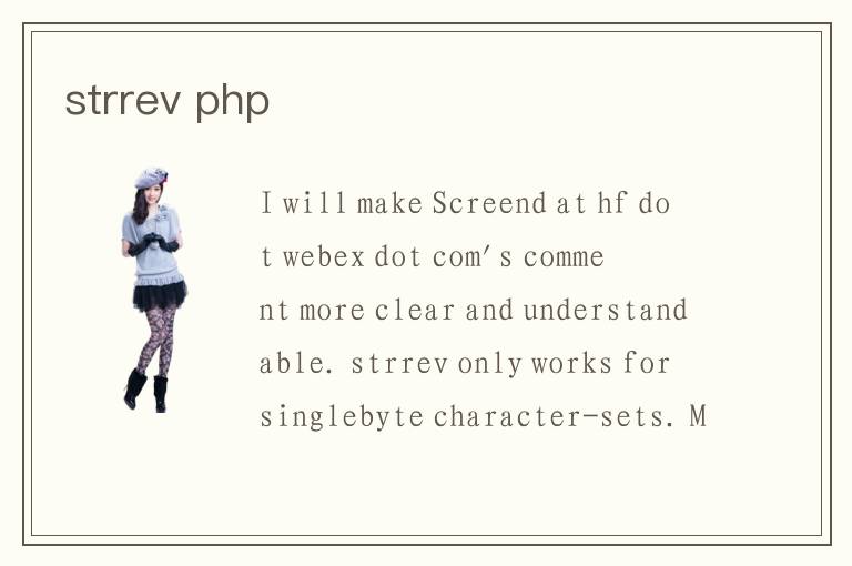 I will make Screend at hf dot webex dot com\'s comment more clear and understandable. strrev only works for singlebyte character-sets. Multibytes charactersets are not