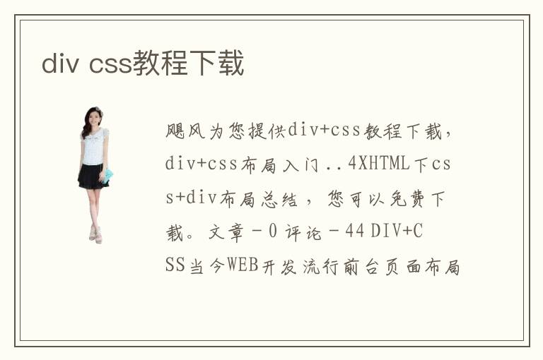 颶風(fēng)為您提供div+css教程下載,div+css布局入門(mén) ..4XHTML下css+div布局總結(jié) ,您可以免費(fèi)下載。