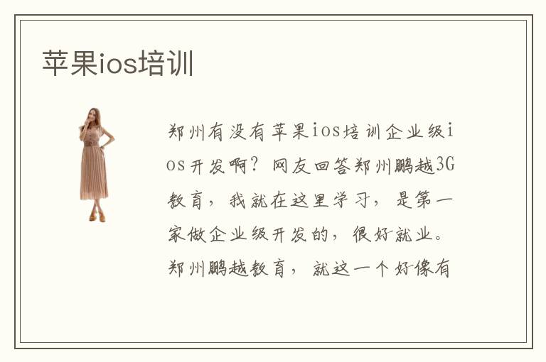 鄭州有沒有蘋果ios培訓(xùn)企業(yè)級ios開發(fā)?。烤W(wǎng)友回答鄭州鵬越3G教育,我就在這里學(xué)習(xí),是第一家做企業(yè)級開發(fā)的,很好就業(yè)。鄭州鵬越教育,就這一個(gè)好像有,我在網(wǎng)上查出來