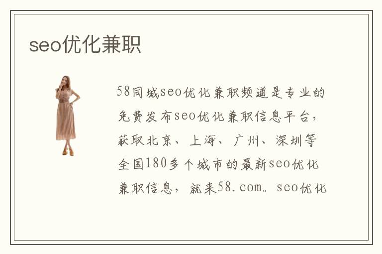 58同城seo優(yōu)化兼職頻道是專業(yè)的免費(fèi)發(fā)布seo優(yōu)化兼職信息平臺(tái),獲取北京、上海、廣州、深圳等全國(guó)180多個(gè)城市的最新seo優(yōu)化兼職信息,就來(lái)58.com。