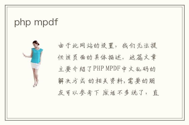這篇文章主要介紹了PHP MPDF中文亂碼的解決方式 的相關資料,需要的朋友可以參考下 廢話不多說了,直接奔入主題了。 推薦教程 PHP使用MPDF類生成PDF