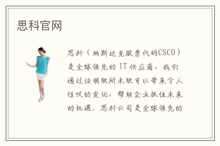 思科(納斯達(dá)克股票代碼CSCO)是全球領(lǐng)先的 IT 供應(yīng)商,我們通過證明聯(lián)所未聯(lián)可以帶來令人驚嘆的變化,幫助企業(yè)抓住未來的機(jī)遇。