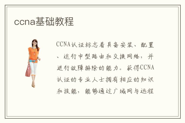 CCNA認(rèn)證標(biāo)志著具備安裝、配置、運(yùn)行中型路由和交換網(wǎng)絡(luò),并進(jìn)行故障排除的能力。獲得CCNA認(rèn)證的專業(yè)人士擁有相應(yīng)的知識(shí)和技能,能夠通過廣域網(wǎng)與遠(yuǎn)程站點(diǎn)建立連接,