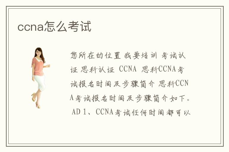 您所在的位置 我要培訓(xùn) >考試認證 >思科認證 > CCNA > 思科CCNA考試報名時間及步驟簡介 思科CCNA考試報名時間及步驟簡介如下。 AD 1、CCNA考試任何時間都可以報名