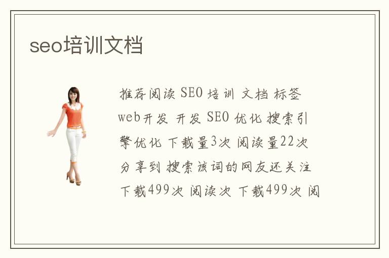 推薦閱讀 SEO 培訓(xùn) 文檔 標(biāo)簽 web開發(fā) 開發(fā) SEO 優(yōu)化 搜索引擎優(yōu)化 下載量3次 閱讀量22次 分享到 搜索該詞的網(wǎng)友還關(guān)注 下載499次 閱讀次 下載499次 閱讀