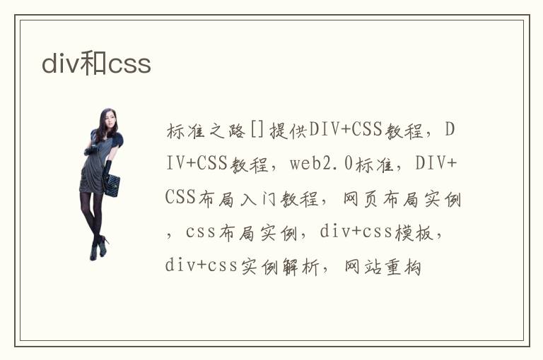 標(biāo)準(zhǔn)之路[]提供DIV+CSS教程,DIV+CSS教程,web2.0標(biāo)準(zhǔn),DIV+CSS布局入門(mén)教程,網(wǎng)頁(yè)布局實(shí)例,css布局實(shí)例,div+css模板,div+css實(shí)例解析,網(wǎng)站重構(gòu)