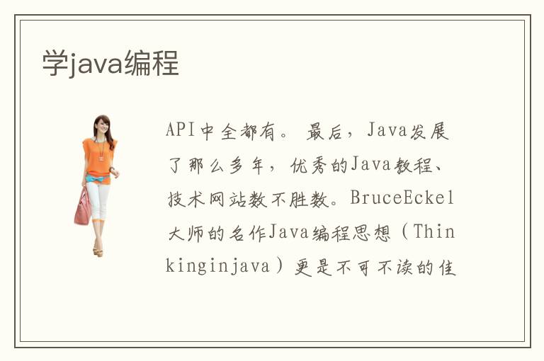 API中全都有。 最后,Java發(fā)展了那么多年,優(yōu)秀的Java教程、技術(shù)網(wǎng)站數(shù)不勝數(shù)。BruceEckel大師的名作Java編程思想(Thinkinginjava)更是不可不讀的佳作,許多狂熱愛(ài)好者