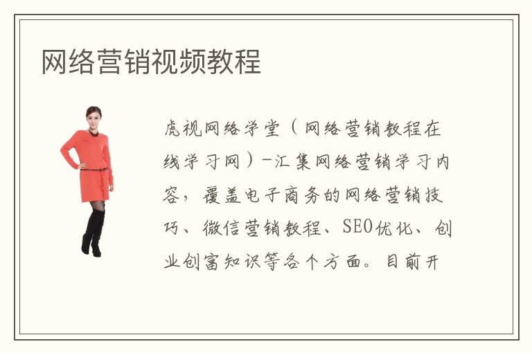 虎視網(wǎng)絡(luò)學(xué)堂(網(wǎng)絡(luò)營(yíng)銷教程在線學(xué)習(xí)網(wǎng))-匯集網(wǎng)絡(luò)營(yíng)銷學(xué)習(xí)內(nèi)容,覆蓋電子商務(wù)的網(wǎng)絡(luò)營(yíng)銷技巧、微信營(yíng)銷教程、SEO優(yōu)化、創(chuàng)業(yè)創(chuàng)富知識(shí)等各個(gè)方面。目前開辦的課