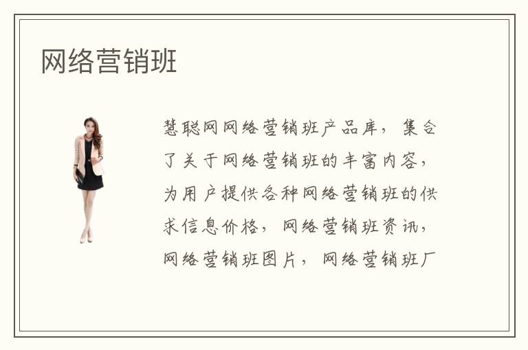 慧聰網(wǎng)網(wǎng)絡(luò)營銷班產(chǎn)品庫,集合了關(guān)于網(wǎng)絡(luò)營銷班的豐富內(nèi)容,為用戶提供各種網(wǎng)絡(luò)營銷班的供求信息價格,網(wǎng)絡(luò)營銷班資訊,網(wǎng)絡(luò)營銷班圖片,網(wǎng)絡(luò)營銷班廠家等服務(wù),搭建網(wǎng)絡(luò)
