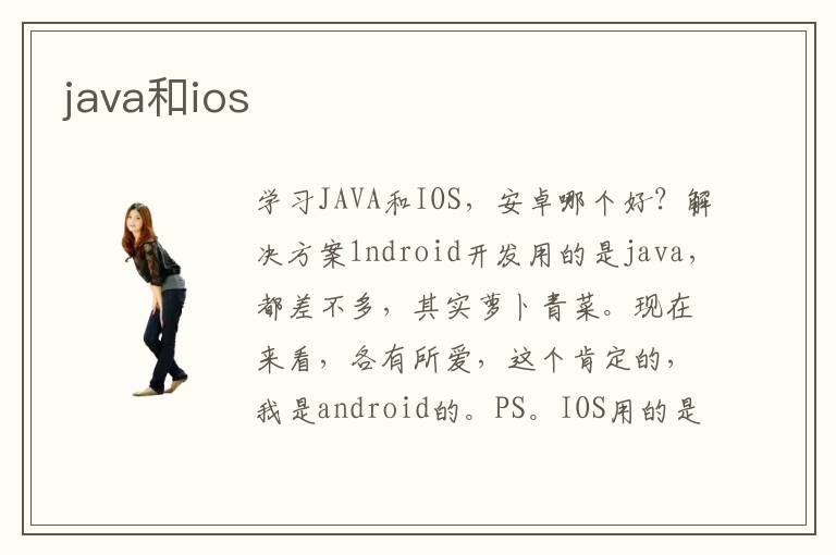學(xué)習(xí)JAVA和IOS,安卓哪個好?解決方案1ndroid開發(fā)用的是java,都差不多,其實蘿卜青菜?,F(xiàn)在來看,各有所愛,這個肯定的,我是android的。PS。IOS用的是object-C。具
