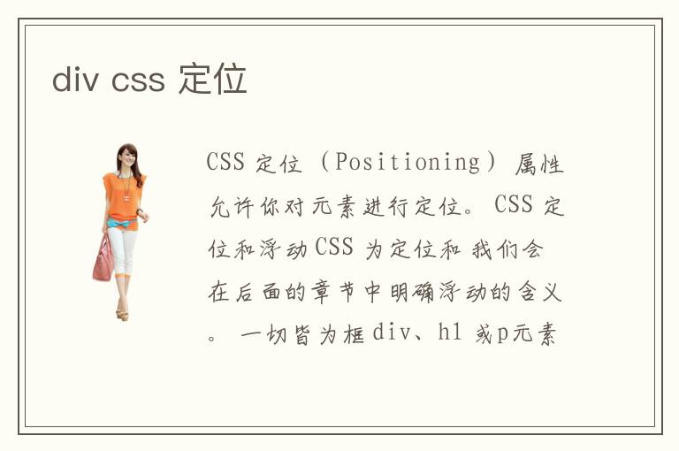 CSS 定位 (Positioning) 屬性允許你對元素進(jìn)行定位。 CSS 定位和浮動 CSS 為定位和 我們會在后面的章節(jié)中明確浮動的含義。 一切皆為框 div、h1 或p元素常常被稱為塊級元